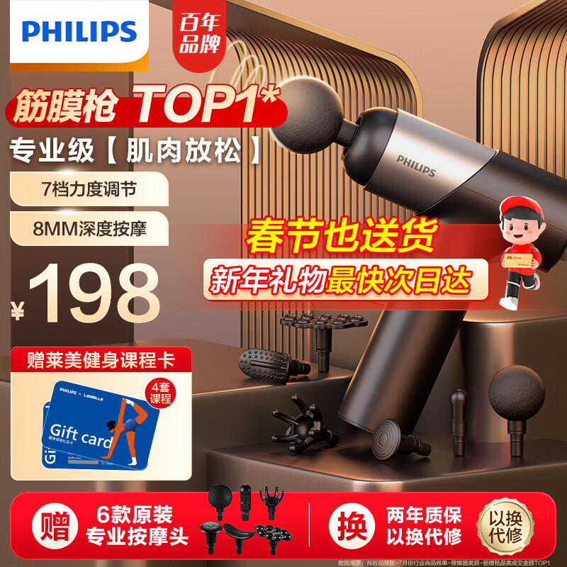 飞利浦(PHILIPS)筋膜枪肌肉按摩器全身筋膜枪按摩器专业级筋膜枪肌肉放松腿部按摩器按摩筋膜枪经膜筋膜枪颈膜枪 【年度新品+8mm深度按摩】价格:198.00元!