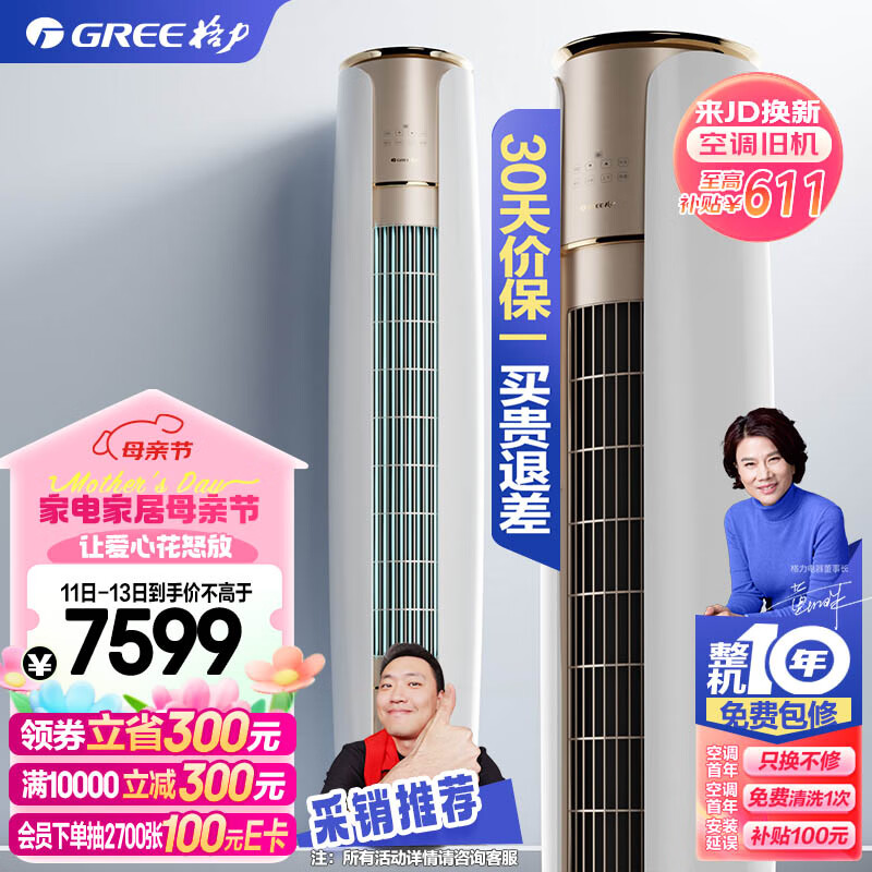 格力(GREE)空调 京东小家智能生态 2匹 云焕 1级能效变频 客厅空调立式空调柜机KFR-50LW/NhDe1BAj价格:7599.00元!
