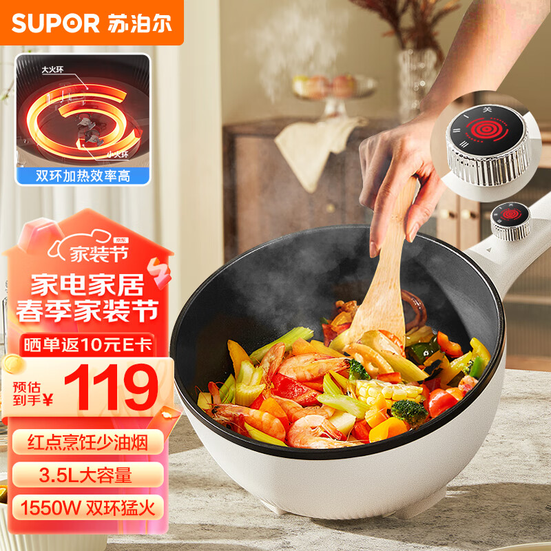 苏泊尔(SUPOR)电炒锅 电煮锅 电火锅 家用多功能一体 煎炒炖煮不粘宿舍电热锅 3.5L多用途锅CJ25A611价格:129.00元!