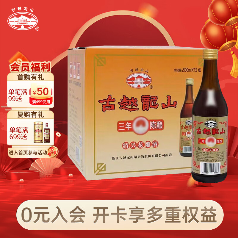 古越龙山 彩三年 半干型 绍兴黄酒 500ml*12瓶 整箱装价格:99.00元!