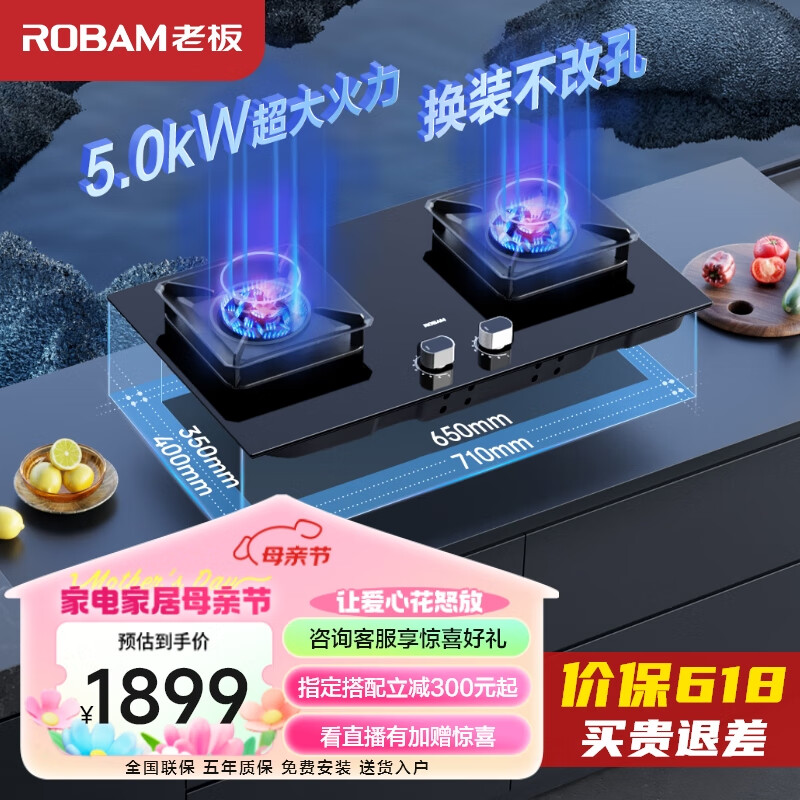 老板(Robam)JZY-57B6D家用燃气灶液化气灶双灶嵌入式燃气灶一级能效 5.0kW大火力猛火灶煤气灶双灶灶具灶台价格:1899.00元!