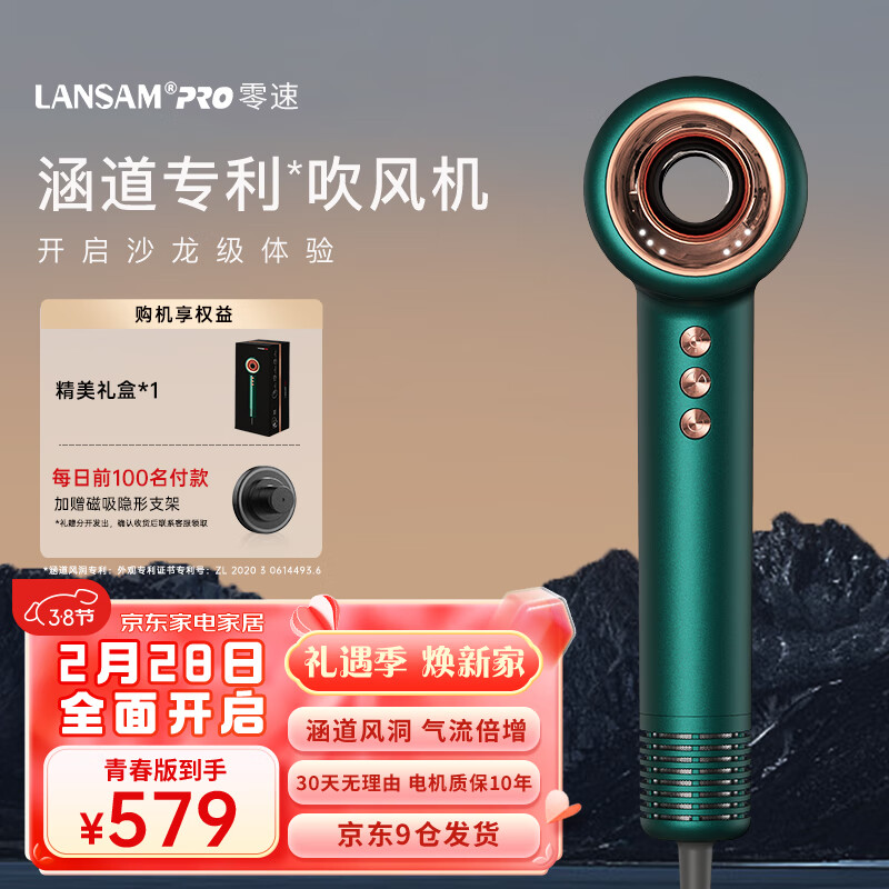 LANSAM零速吹风机家用风筒负离子护发高速大功率大风力速干不伤发理发店发廊用电吹风 青春版-典雅绿价格:659.00元!