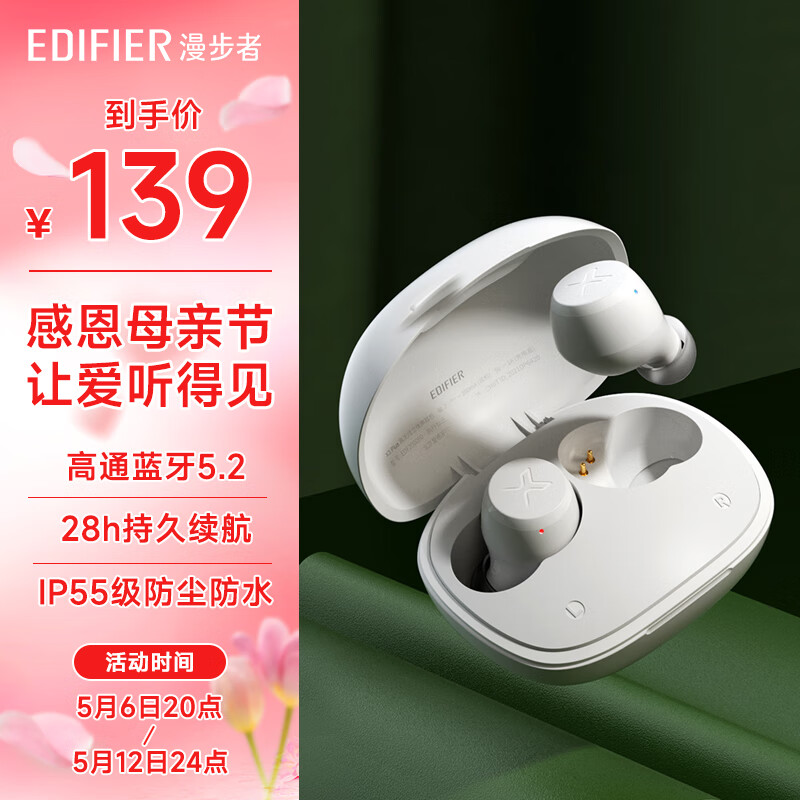 漫步者(EDIFIER)声迈X3 Plus 真无线蓝牙耳机 TWS音乐运动耳机 适用苹果小米华为 霜雪白价格:139.00元!