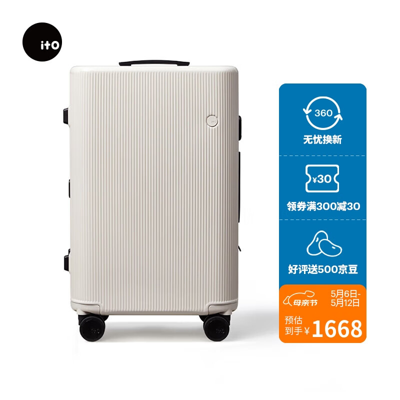 ITO行李箱PISTACHIO拉杆箱男女旅行箱大容量托运箱烟白28英寸价格:1698.00元!