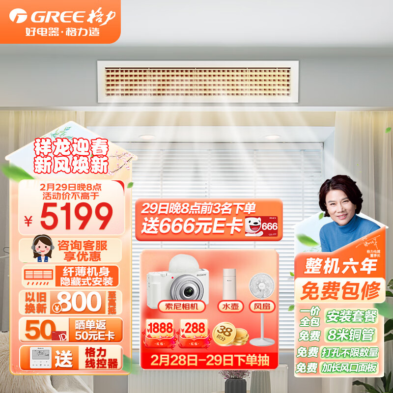 格力(GREE)中央空调 风管机一拖一 大1匹家用嵌入式空调 直流变频FGR2.6Pd/C3Nha-N3 京仓派送(一价全包)价格:5199.00元!