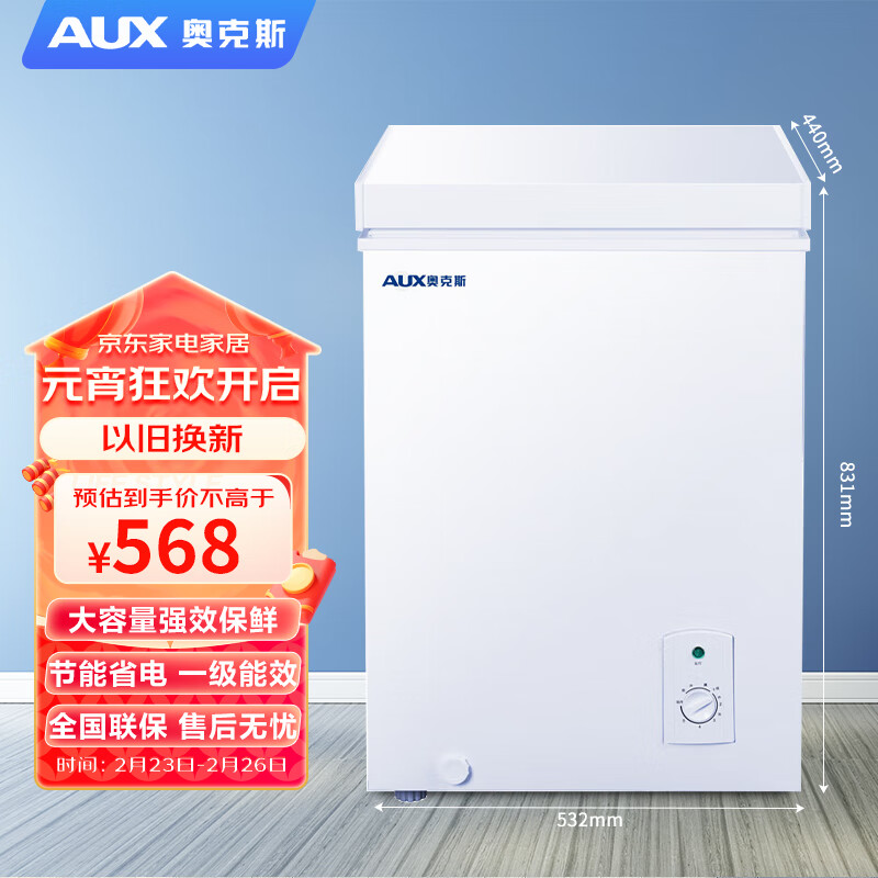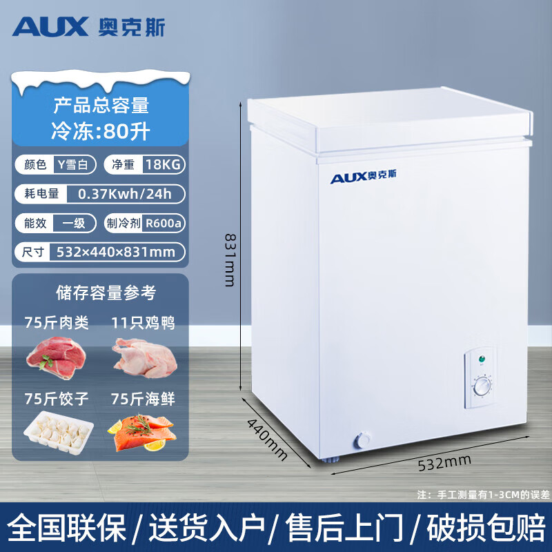 奥克斯(AUX)80L升冷柜小型家用冰柜大容量商用单温立卧式冷冻冷藏柜节能省电轻音BC/BD-80K158L价格:1149.00元!