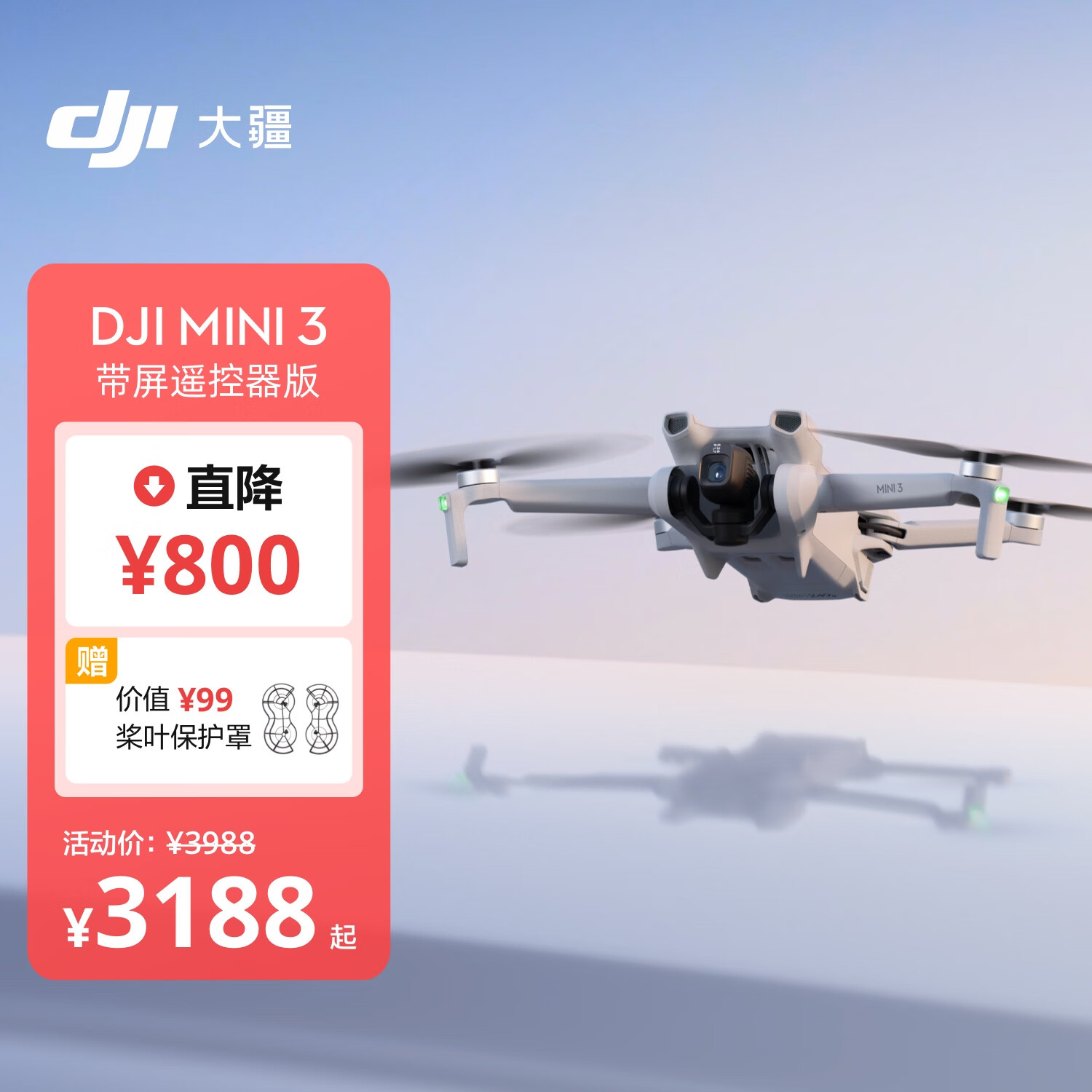 大疆 DJI Mini 3 带屏遥控器版 优选迷你航拍机 智能高清拍摄无人机 小型遥控飞机 + 128G内存卡价格:3297.90元!