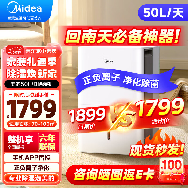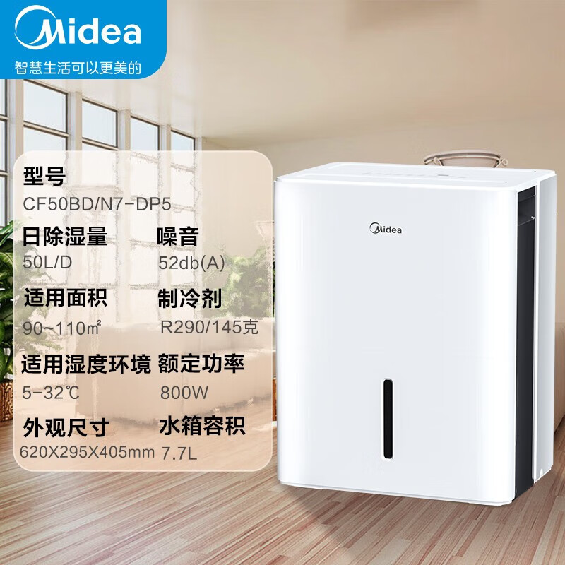 美的(Midea)除湿机/抽湿机 除湿量50升/天 App智控 大平层地下室别墅商用工业吸湿器CF50BD/N7-DP5价格:1799.00元!