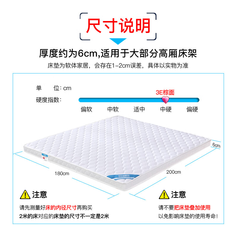 宜眠坊床垫 3E椰棕床垫 老人青少年偏硬棕垫A301-06 1.35*2米价格:359.00元!