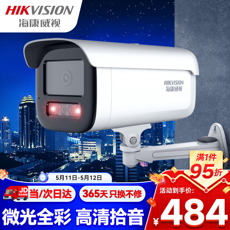 HIKVISION海康威视监控摄像头500万2K高清星光夜视室内外监控摄像机可录音 手机远程 网线供电3T56WD-I3 8MM价格:510.00元!