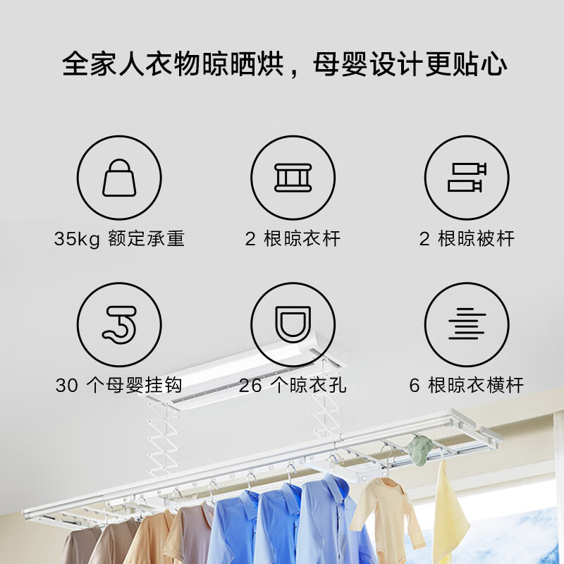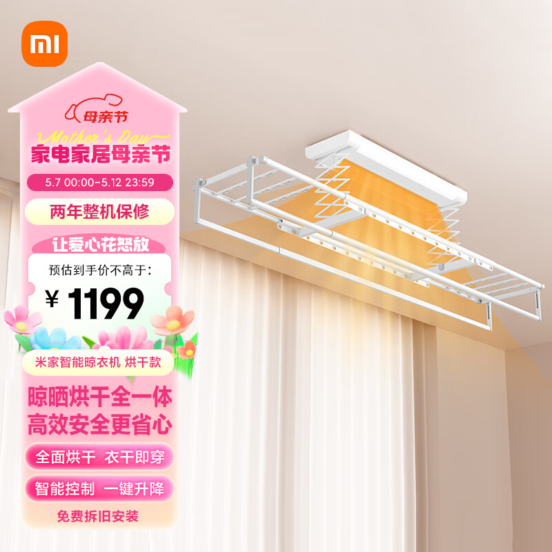 米家智能晾衣机 烘干款 电动晾衣架 阳台伸缩晾衣杆 小米价格:1198.00元!