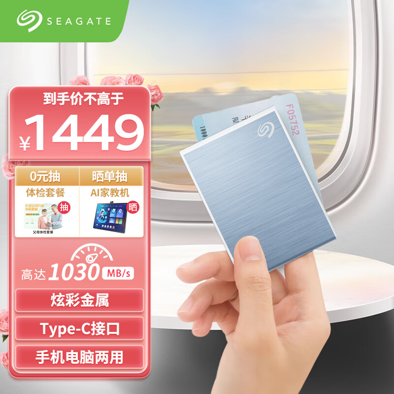 希捷(SEAGATE)移动固态硬盘2TB PSSD NVMe 小铭 type-C USB3.2 蓝色 迷你小型 手机直连 数据恢复服务价格:1449.00元!