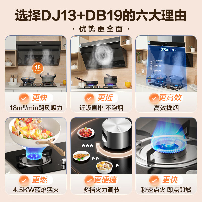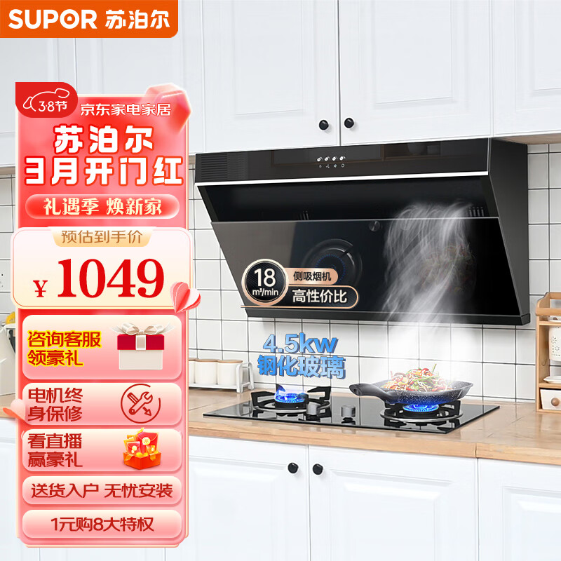 苏泊尔(SUPOR) 抽油烟机烟灶套装 18立方爆炒侧吸式家用吸油烟机燃气灶套装 以旧换新 DJ13+DB19液价格:1049.00元!
