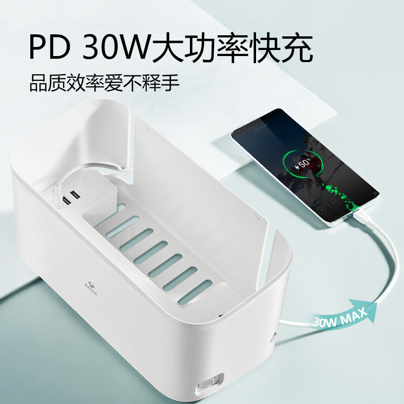 公牛(BULL)30W PD苹果快充新国标收纳盒延长线插座/插线板/插排/排插/接线板/拖线板 6位+USB GN-F2151Q30价格:152.30元!