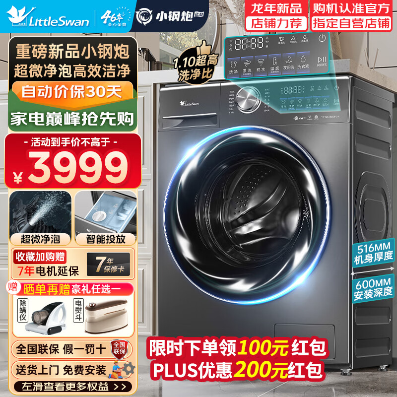 小天鹅(LittleSwan)滚筒洗衣机全自动 10KG大容量 超微净泡 智能投放水魔方【小钢炮2.0】TG100VP28MAX价格:5299.00元!