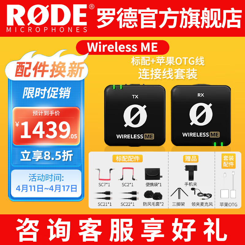 RODE 罗德Wireless ME麦克风无线领夹收音单反手机无线小蜜蜂采访电脑直播外拍vlog Wireless ME+苹果OTG(支持边充边用)价格:1693.00元!