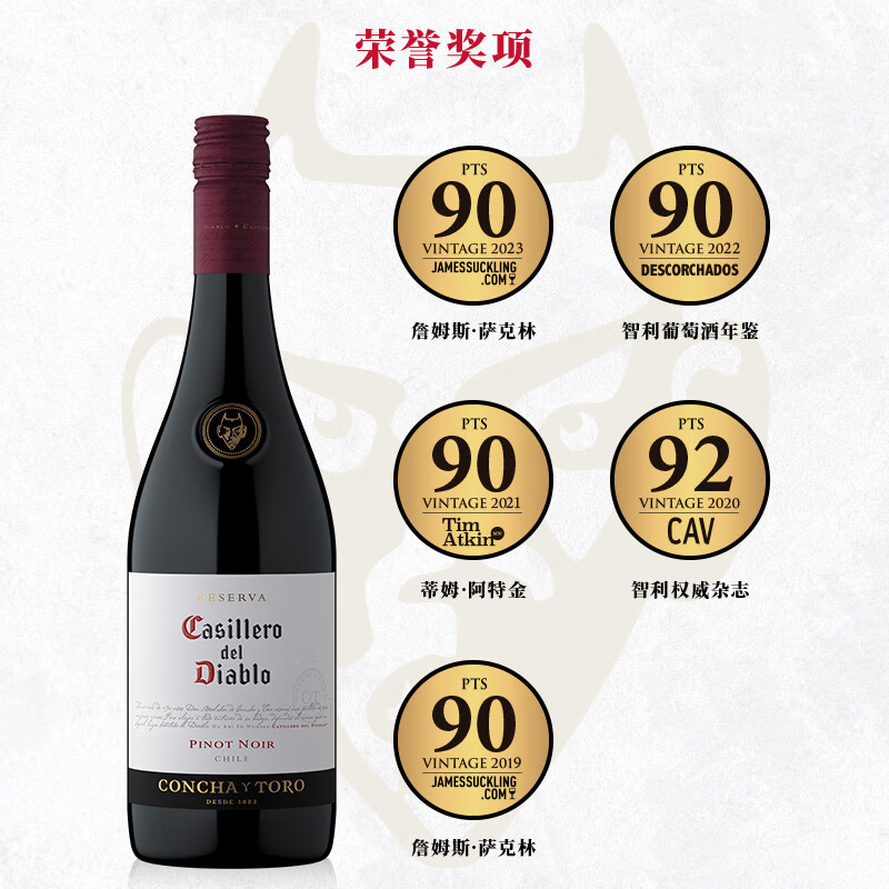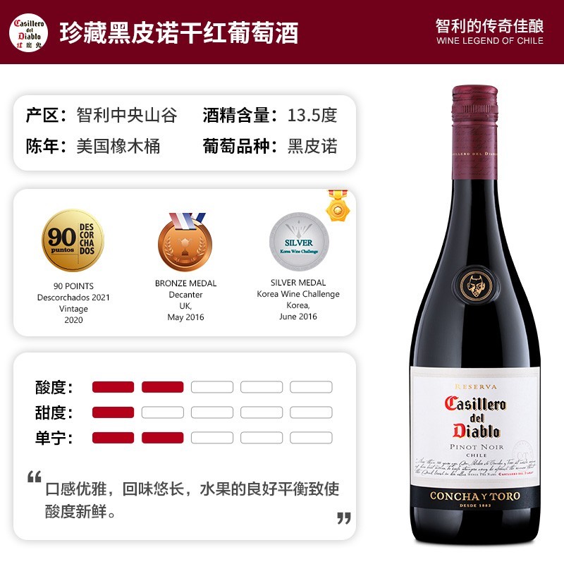 红魔鬼(Casillero del Diablo)珍藏级黑皮诺干红葡萄酒750ml*6瓶整箱 智利进口聚餐红酒价格:329.00元!