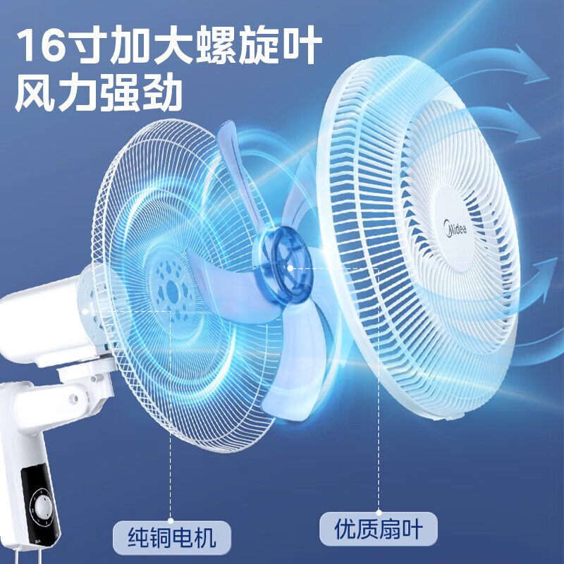 美的(Midea)壁扇16吋壁挂电风扇轻声宿舍摇头商用挂墙风扇食堂大风力工业壁扇摇头牛角扇FWA40UA价格:209.00元!