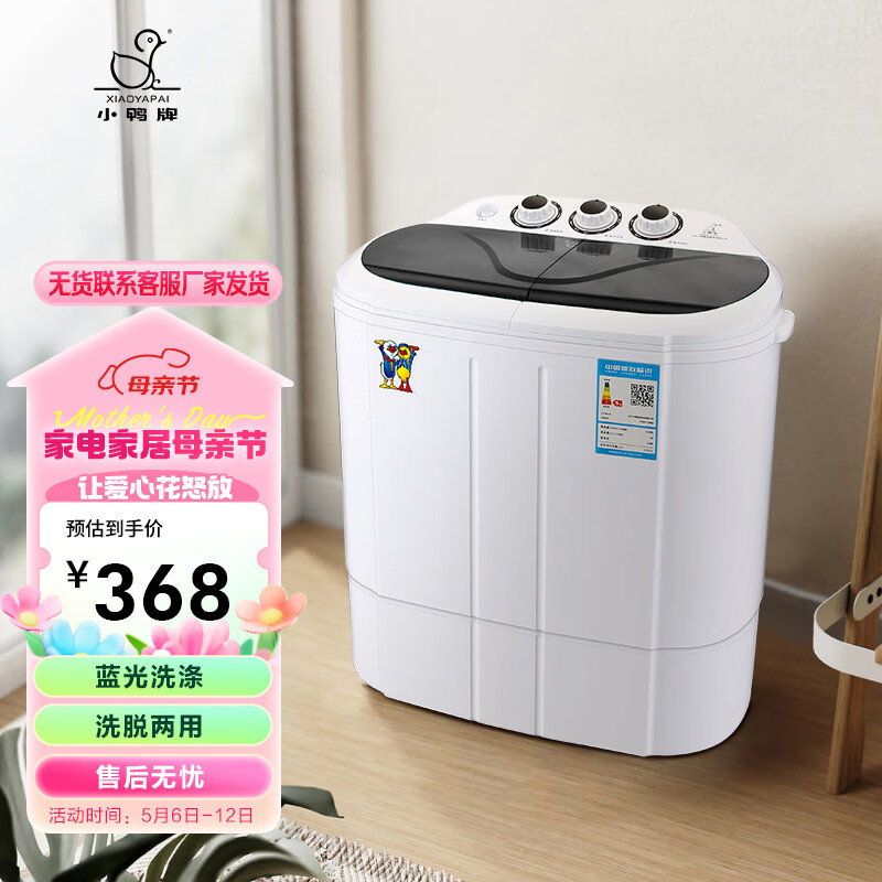 小鸭2.5公斤双缸小型半自动迷你洗衣机 婴儿小洗衣机 内衣裤洗衣机小型 蓝光款 XPB25-1680S价格:368.00元!