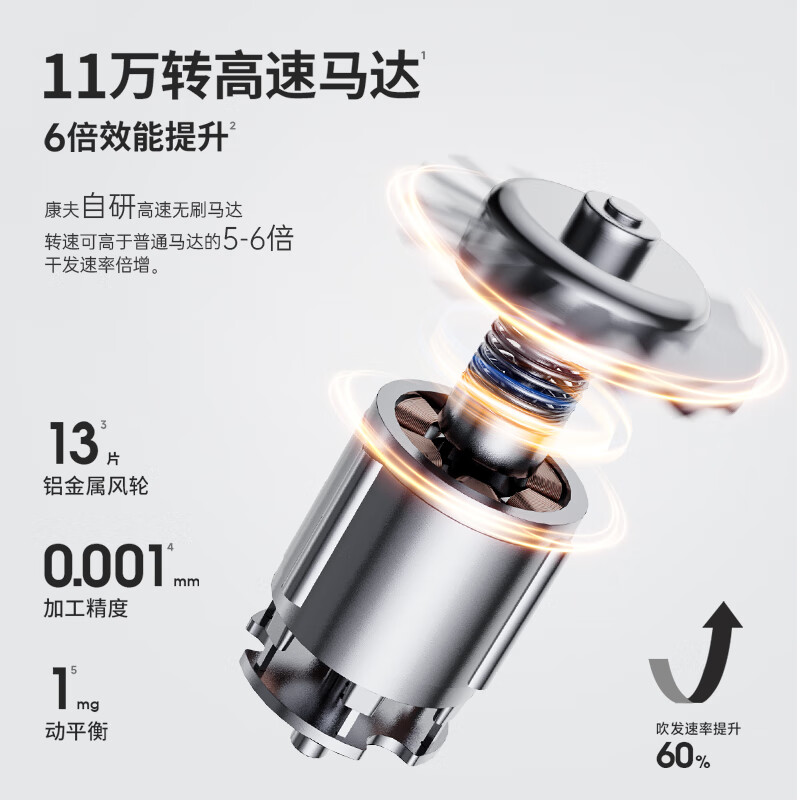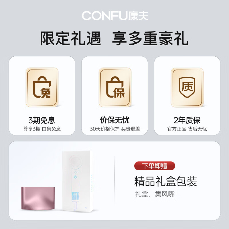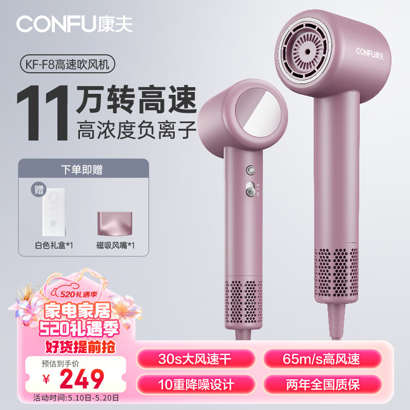 康夫(CONFU)11万转高速电吹风机家用大风力负离子护发送女友生日情人节520礼物吹风筒 KF-F8粉价格:379.00元!