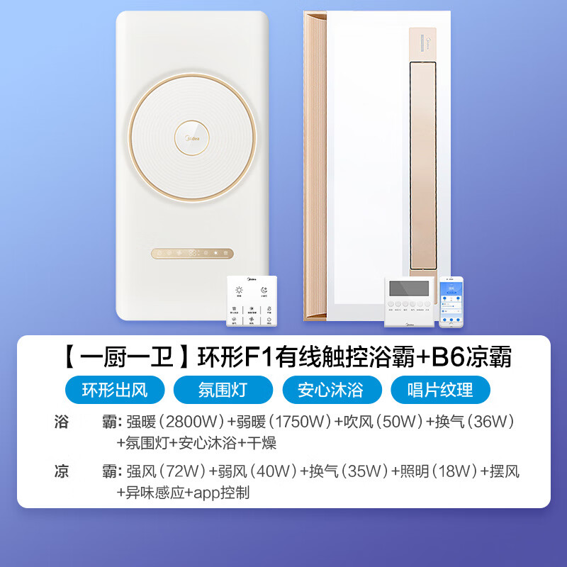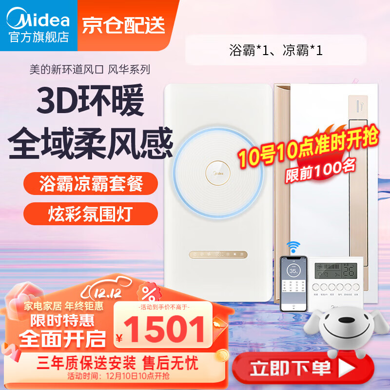 美的(Midea)风暖环形浴霸智能浴室排气取暖器卫生间集成吊顶双电机风华暖风机价格:1501.00元!