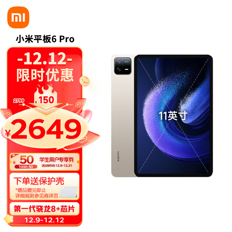 小米平板6Pro(xiaomiPad) 11英寸 骁龙8+强芯 144Hz高刷护眼 2.8K超清 8+256GB 移动办公娱乐平板电脑 金色价格:2649.00元!