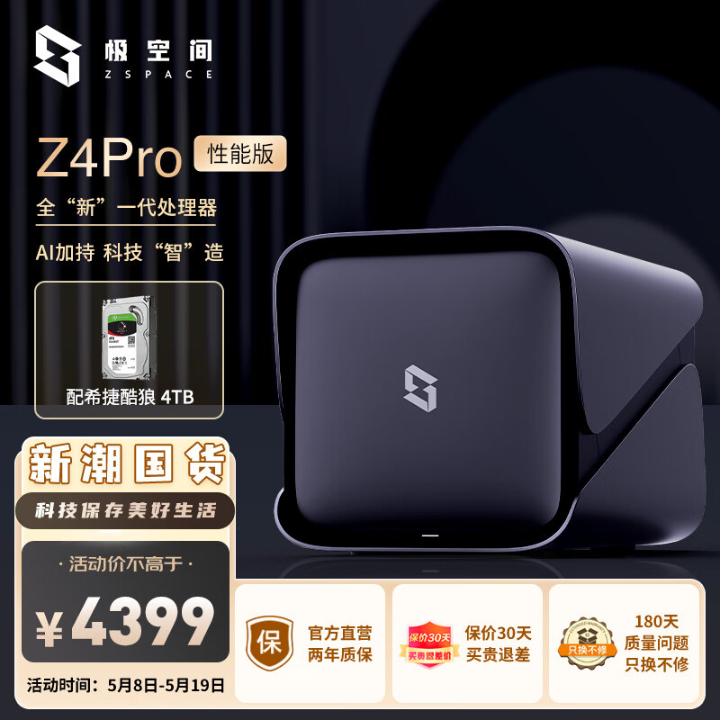 极空间私有云Z4Pro 性能版 8核16G内存 四盘位Nas网络存储服务器家庭个人云【配4T希捷酷狼硬盘】钛金灰价格:4599.00元!