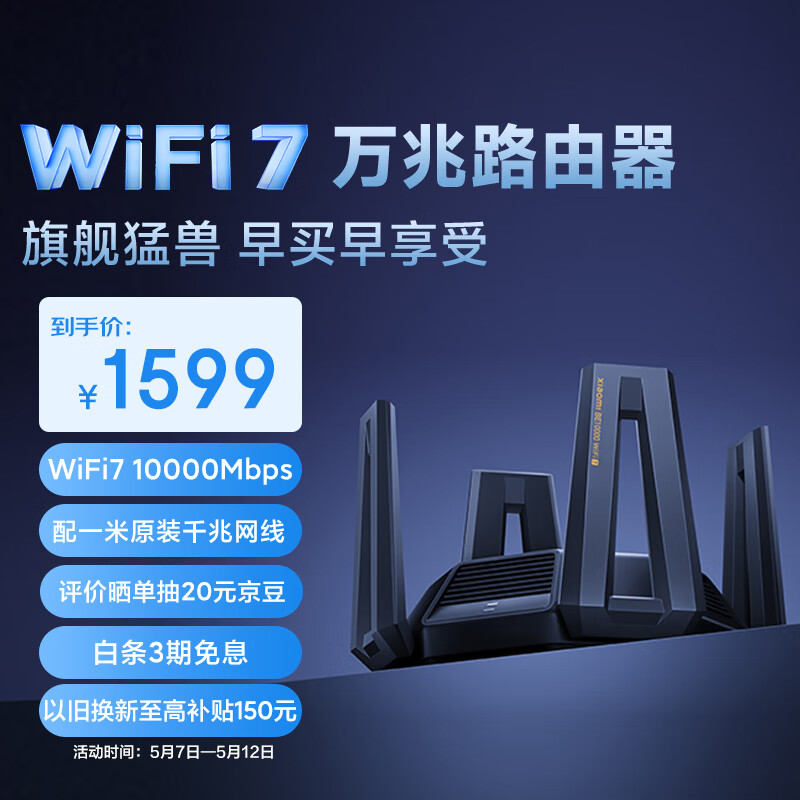 小米(MI)Xiaomi万兆路由器 WiFi7 万兆无线速率路由器 独立三频段 Mesh组网 性能旗舰路由价格:1599.00元!
