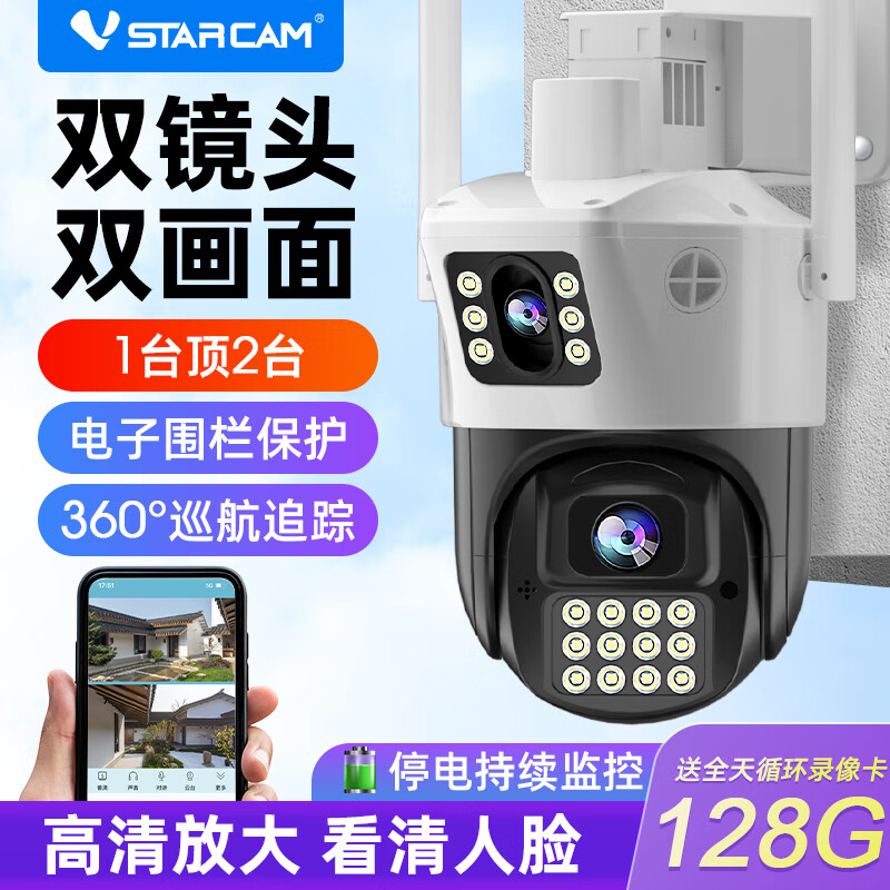 威视达康(VSTARCAM)双摄高清监控器360度无死角带夜视全景户外手机远程对话农村看护家用室外监控摄像头防水夜视旋转价格:328.00元!