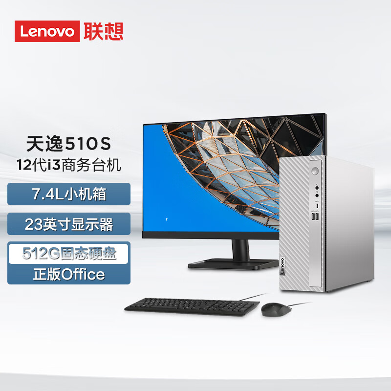 联想(Lenovo)天逸510S 个人商务台式机电脑主机(12代i3-12100? 8G 512G SSD wifi win11 )23英寸价格:2999.00元!