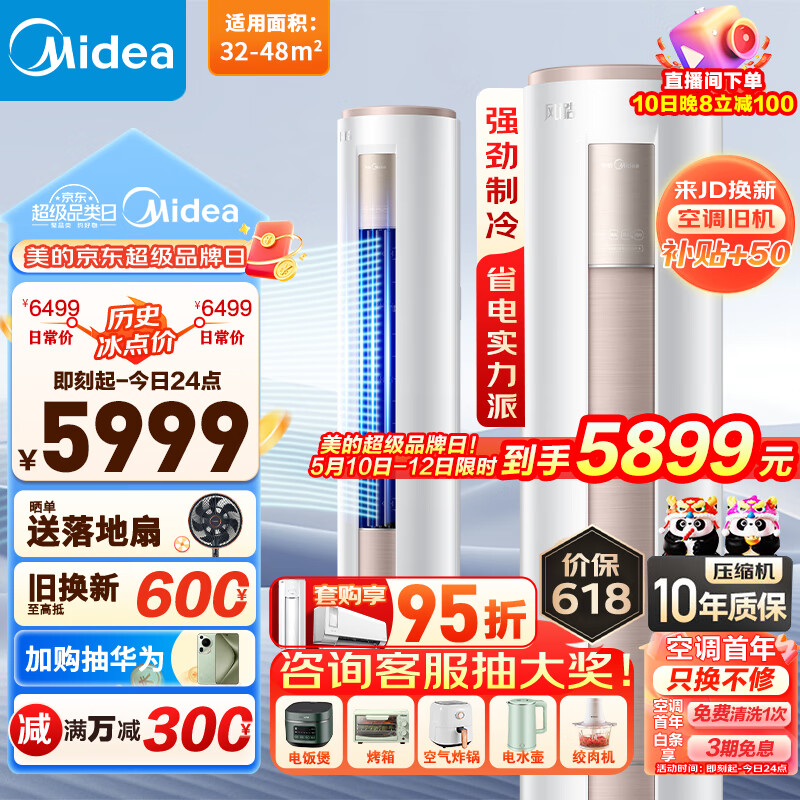 美的(Midea)空调柜机 新一级能效全直流变频冷暖两用 省电客厅圆柱立式落地式客厅静音 3匹风酷【智行相似款】价格:5899.00元!