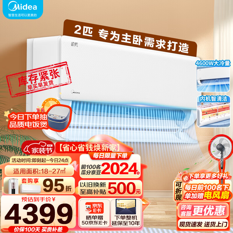 美的(Midea)空调2匹挂机机煌 新一级能效冷暖空调 壁挂式冷暖大风量空调挂机 KFR-46GW/JH1-1价格:4399.00元!