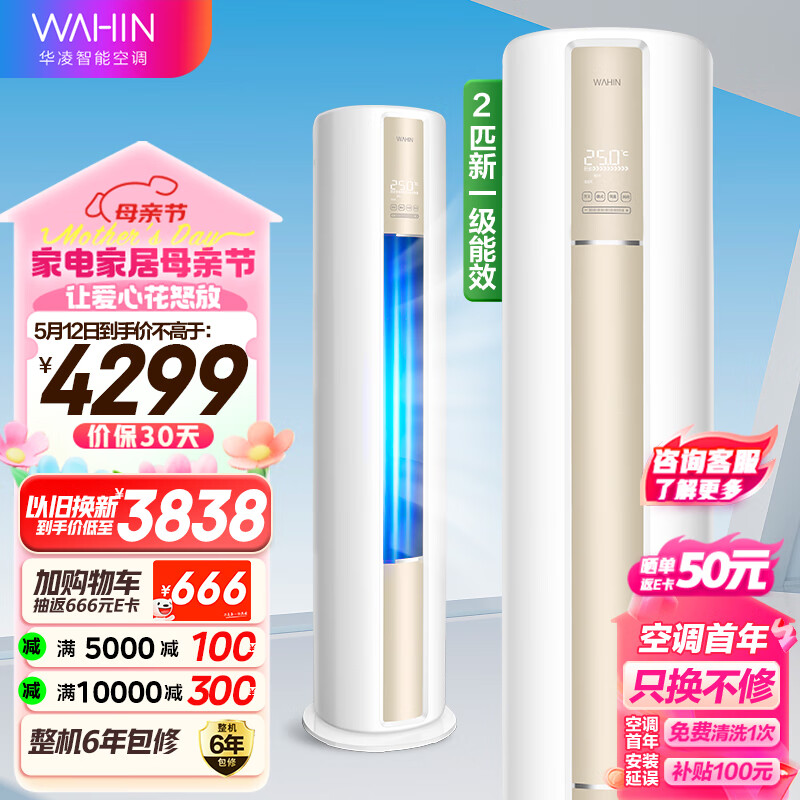 华凌空调 新一级 空调立式 急速冷暖 2匹 客厅空调柜机 京东小家智能 KFR-51LW/N8HA1 以旧换新价格:4249.00元!