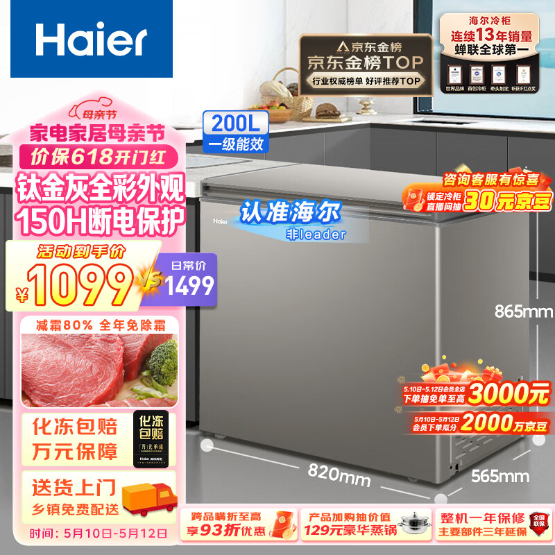 海尔(Haier)200升低霜家用商用冷藏柜冷冻柜小冰柜小型冷柜小冰箱海尔冰柜BC/BD-200GHCD以旧换新价格:1139.00元!