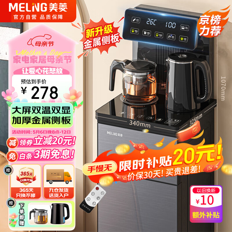 美菱(MeiLing)茶吧机家用饮水机大屏下置式水桶饮水机 双温双显双出水口多功能全自动智能温热款MY-C921价格:298.00元!