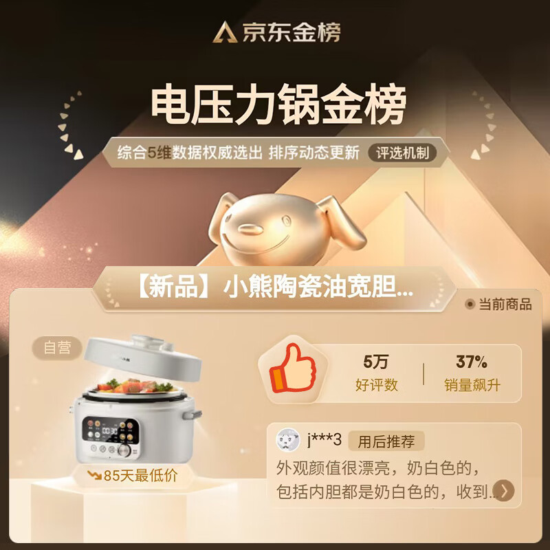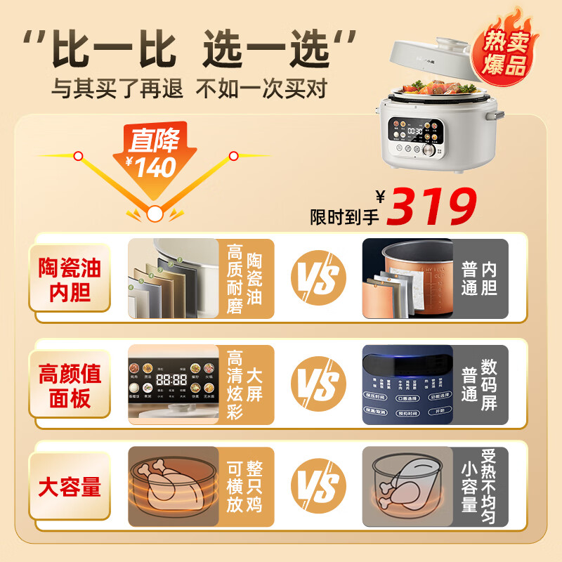 小熊(Bear)电锅 电高压锅 智能高压电饭锅 家用多功能可打火锅煲汤自动控压 YLB-C40W5 4升大容量双盖价格:319.00元!
