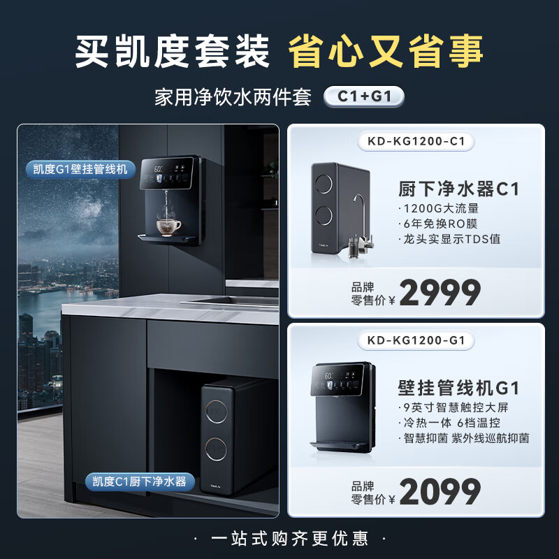 凯度(CASDON)净水器 直饮机 饮水机 厨下净水器C1+壁挂管线机G1价格:4398.00元!