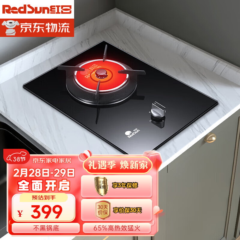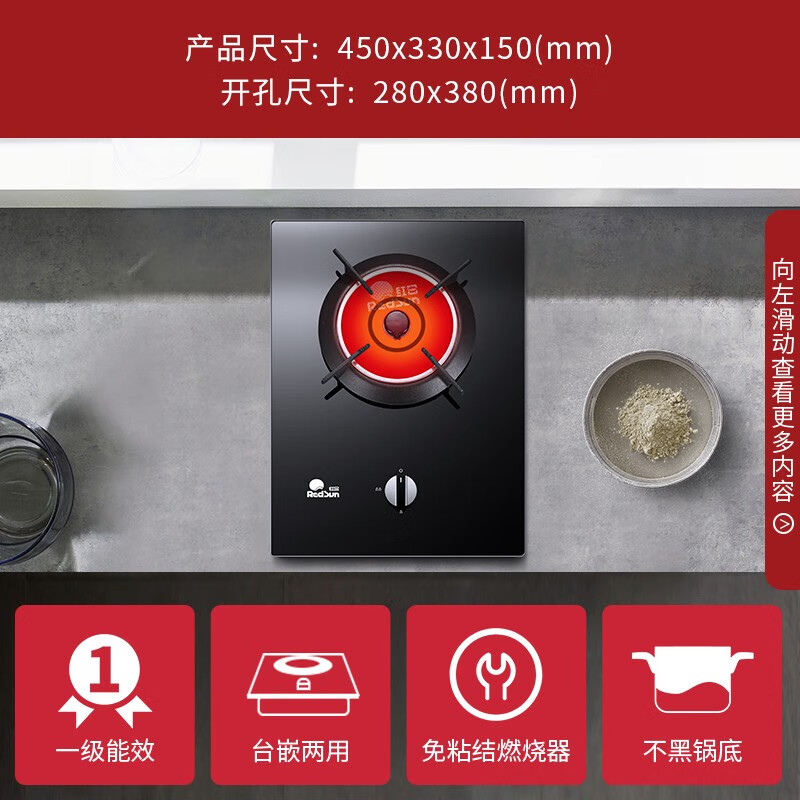 红日(RedSun)红外线 燃气灶 台嵌两用单灶 一级能效 JZT-EM108B 天然气价格:399.00元!