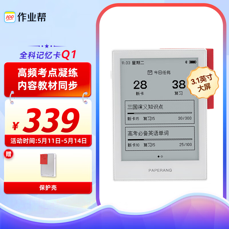 作业帮喵喵机全科学习记忆卡Q1 小初高知识电子单词卡墨水屏单词通电子词典单词记忆神器记忆卡学习机价格:339.00元!