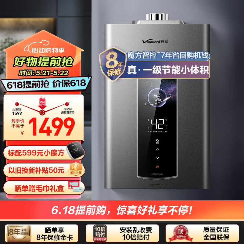 万和(Vanward)燃气热水器16升天然气小体积设计【真·一级节能】小魔方智控微焰控温水伺服恒温JSQ30-ME5J16 PLUS价格:1499.00元!