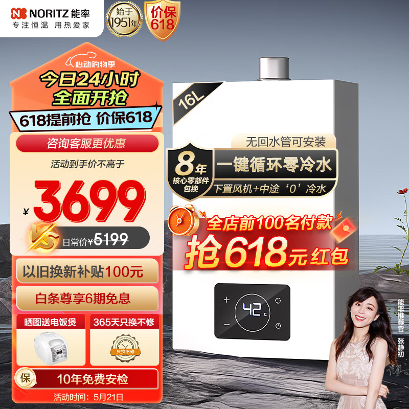 能率(NORITZ)零冷水燃气热水器16升 中途开关“0”冷水 降噪恒温GQ-16E5FEXQ(JSQ31-E5Q)天然气价格:3999.00元!