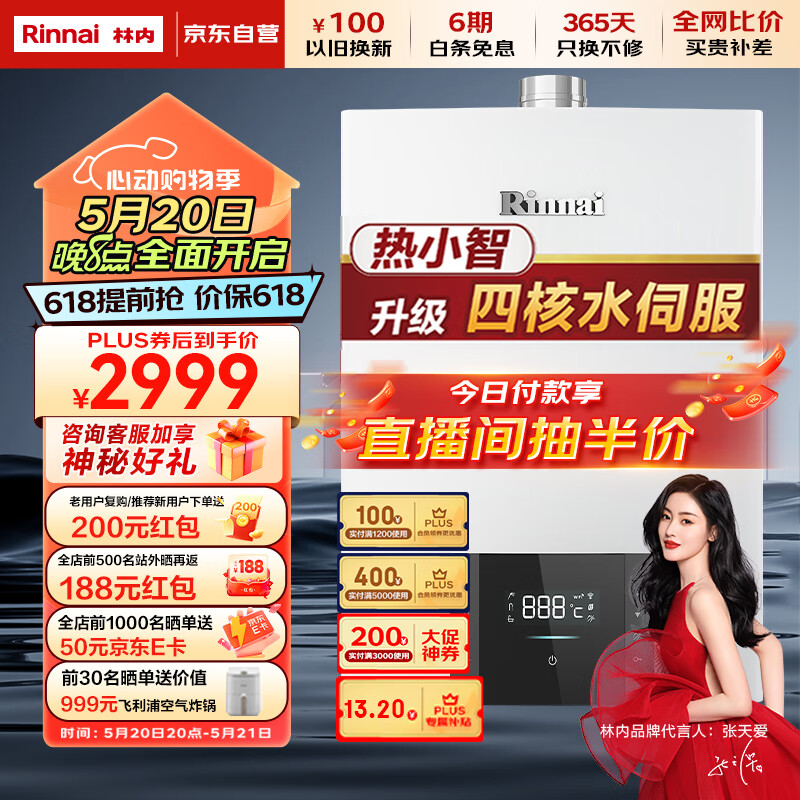 林内(Rinnai)【热小智】13升恒温防冻 燃气热水器变频水伺服京东小家智能生态语音APP智控13QD06W (JSQ26-D06W)价格:3299.00元!