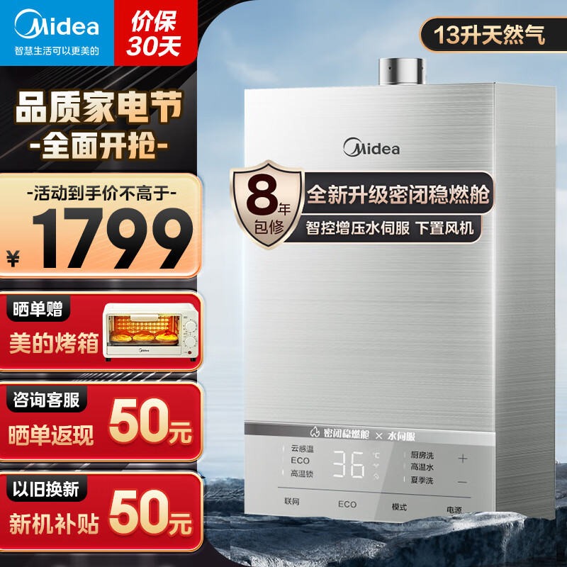 美的(Midea)燃气热水器天然气即热式超薄小巧下置风机系列 密闭稳燃舱防冻强排式速热恒温家用热水器Magic系列 13L 水伺服Magic Pro 下置风机价格:2399.00元!