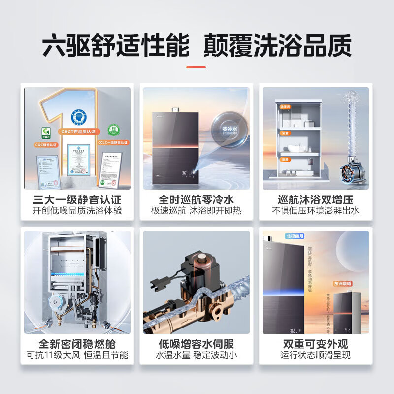 美的(Midea)16升燃气热水器双增压一级静音零冷水变频恒温家用洗澡水伺服天然气热水器安睡系列JSQ30-M9 Ultra价格:3699.00元!