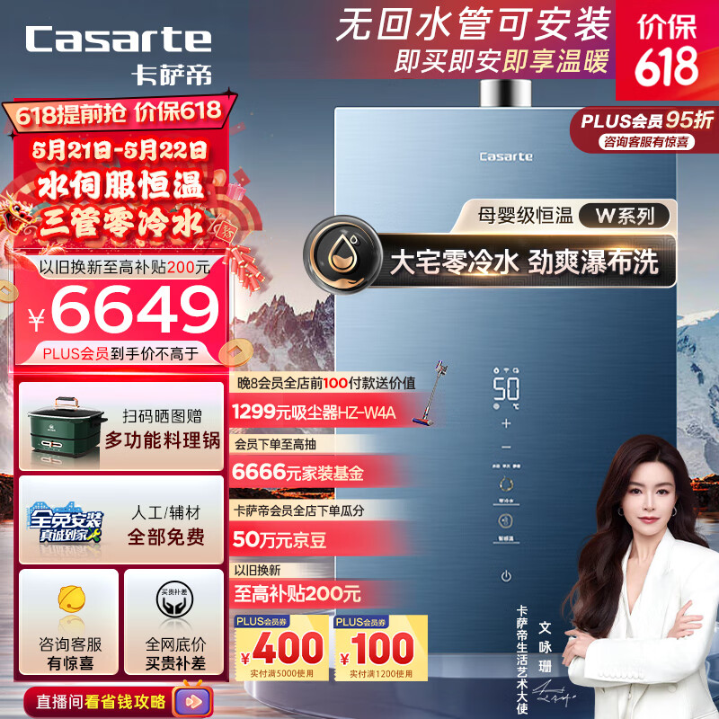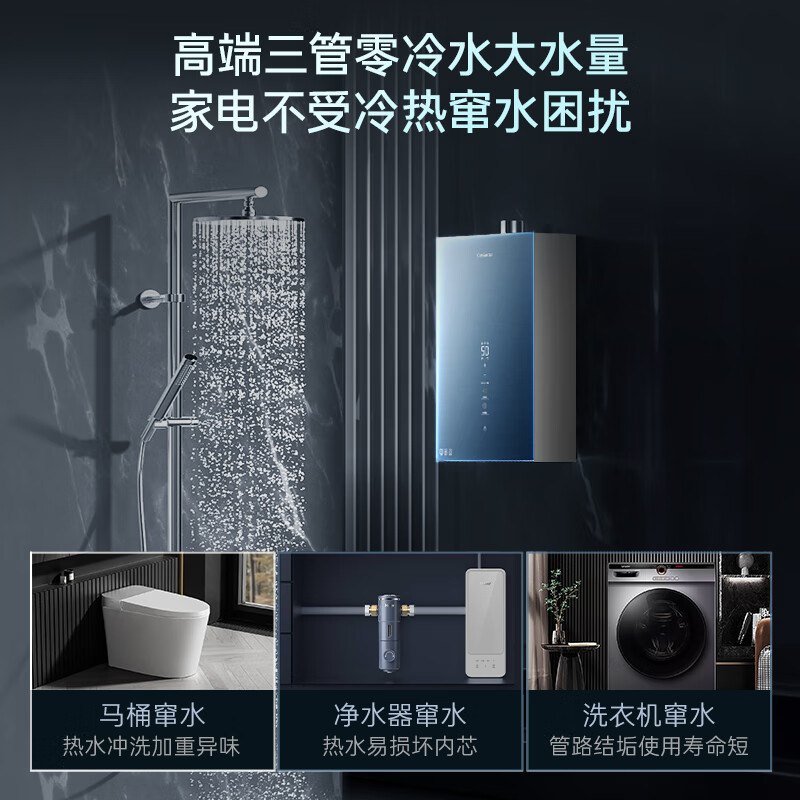 卡萨帝(Casarte)鉴赏家20升家用燃气热水器天然气母婴级恒温三管零冷水静音水伺服增压下置风机JSQ38-20CWS(12T)U1价格:6999.00元!