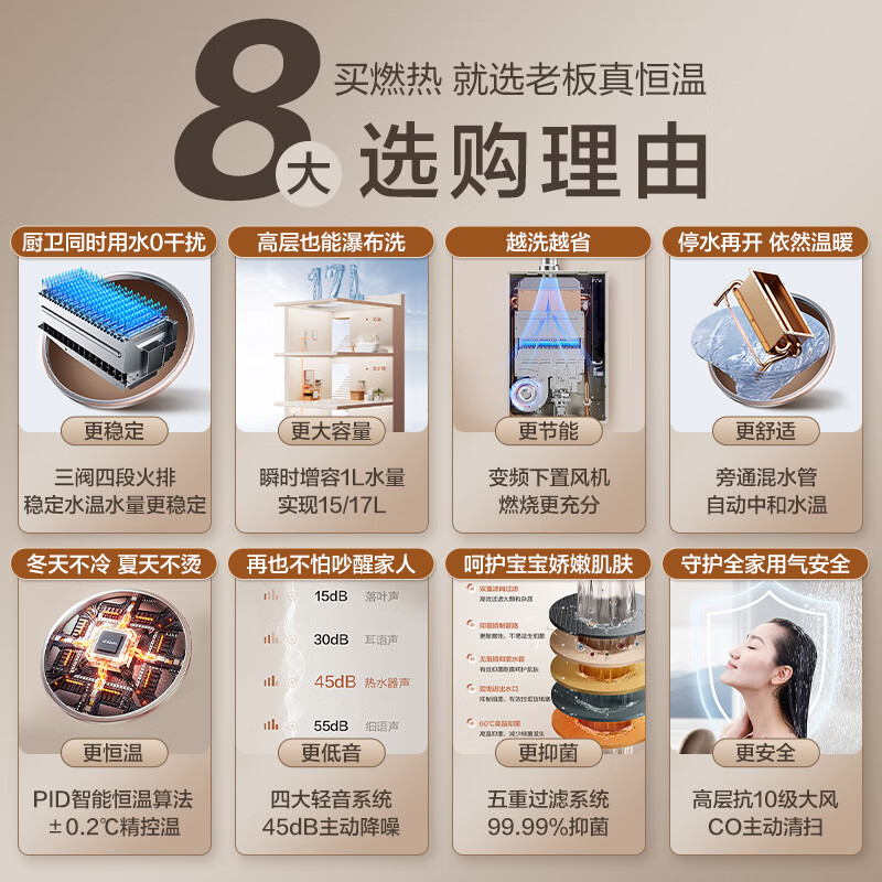 老板(Robam)16+1升盐系G1燃气热水器天然气 澎湃大水量 下置变频风机 智能恒温抗风防冻强鼓式JSQ31-HD660A-16价格:2899.00元!