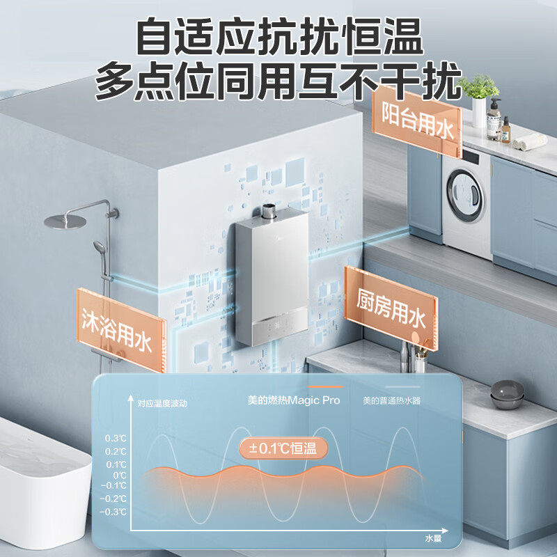 美的(Midea)燃气热水器天然气即热式超薄小巧下置风机系列 密闭稳燃舱防冻强排式速热恒温家用热水器Magic系列 16L 水伺服Magic Pro 下置风机价格:2599.00元!