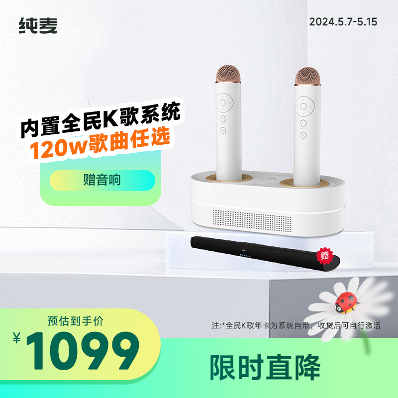 纯麦 智能电视无线k歌麦克风话筒家庭KTV唱歌设备套装K2价格:1099.00元!