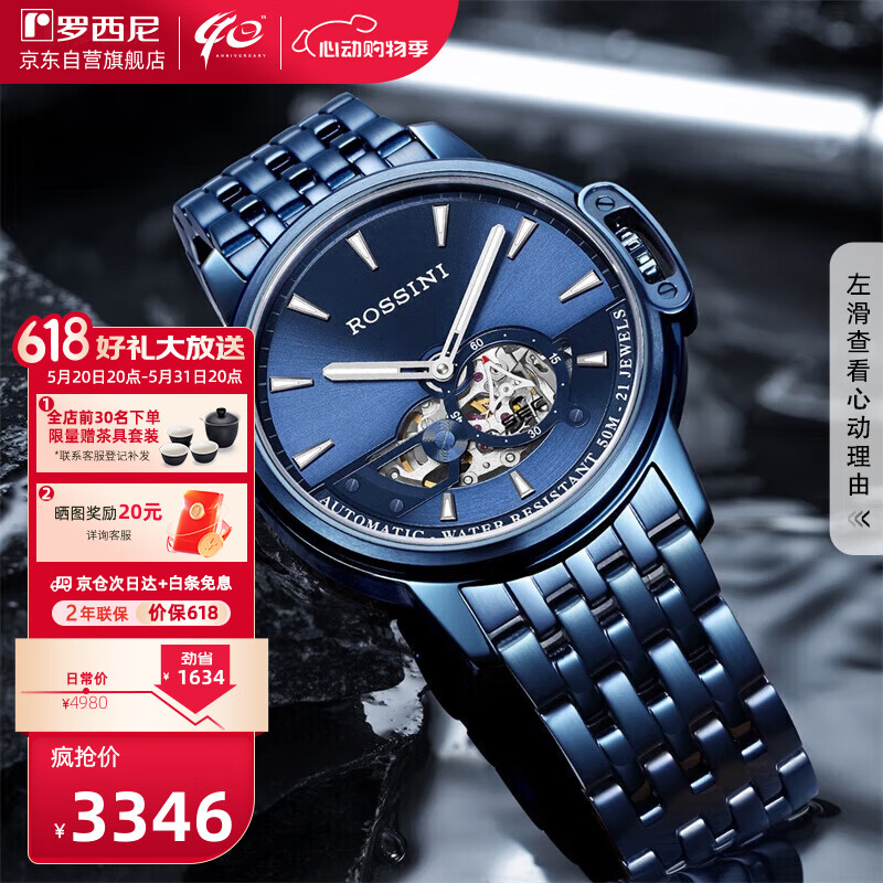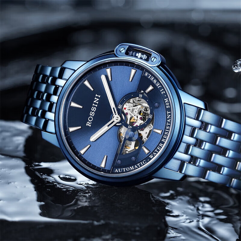 罗西尼(ROSSINI)手表男机械表勋章蓝盘钢带520情人节礼物国表镂空商务蓝 6793价格:3312.50元!