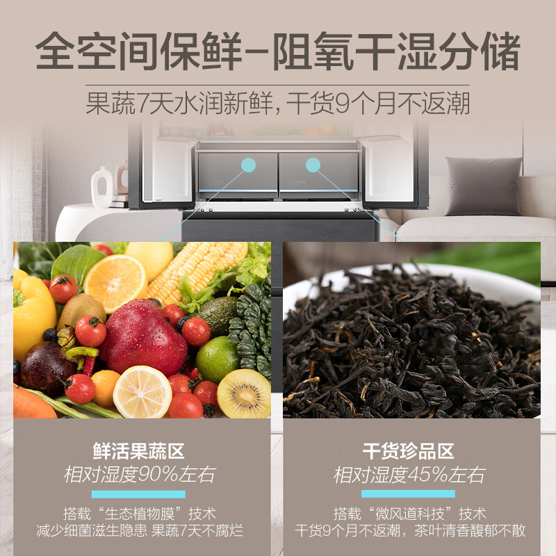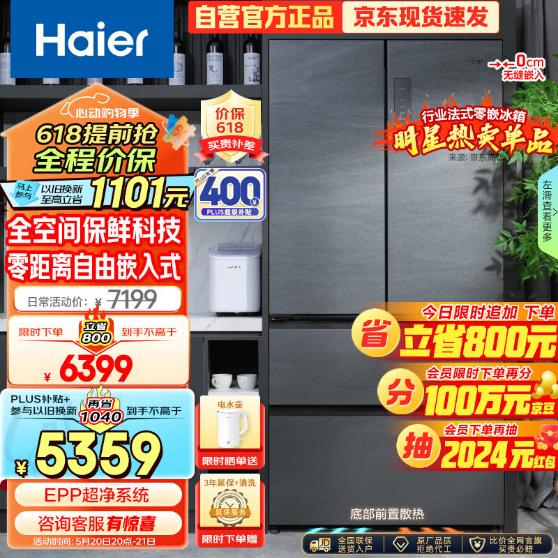 海尔(Haier)501L全空间保鲜零距离自由嵌入法式四开门多门电冰箱家用一级能效超薄零嵌入式BCD-501WGHFD14S8U1价格:7199.00元!